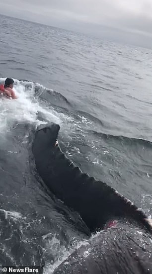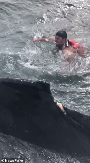Zhruba po hodine sa rozhodli preskúmať, či je veľryba zranená a prečo presne nemôže odplávať. Behom pár minút sa ponoril pod vodu k masívnemu cicavcovi. Stará veľryba bola zachytená do rybárskej bójky a sama sa odtiaľ nedokázala vyslobodiť. Jeden z rybárov – Sam – preto neotáľal a skočil hneď do vody v záchrannej veste a s nožom v ústach. Takmer po 3 hodinovej námahe a úsilí sa tomuto odvážlivcovi podarilo lano prerezať a veľrybu zachrániť.