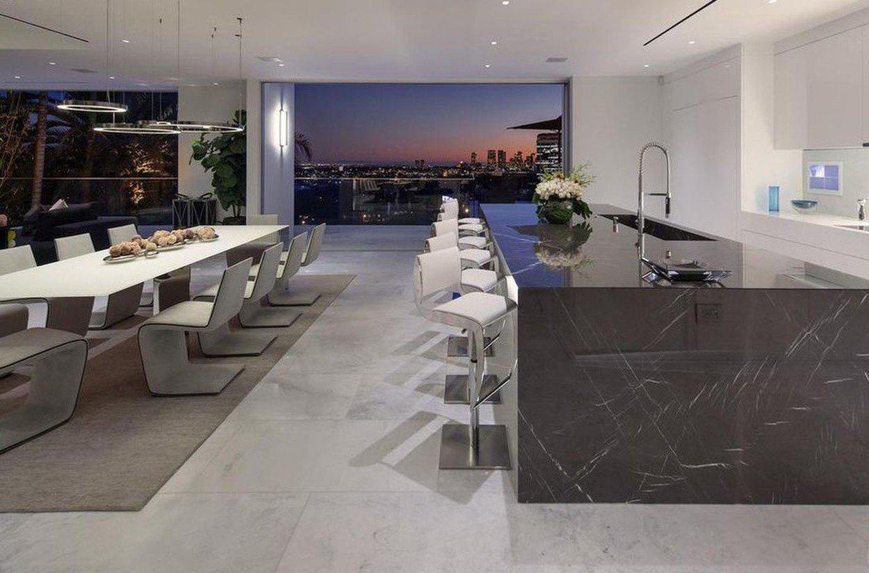 Nádherná moderná vila s výhľadom na západné pobrežie v sebe ukrýva okrem iného aj obrovskú obývačku, ktorá je prepojená s profesionálne vybavenou kuchyňou. V dome nájdeme ďalej napríklad aj vlastnú kinosálu alebo perfektnú pracovňu. Vďaka obrovským presklenným plochám pôsobí každá miestnosť veľmi vzdušne a je plná svetla. V spálni a v obývačke samozrejme nemôže chýbať výstup na terasu. Presklenná je vždy aj aspoň jedna stena v kúpeľni vďaka čomu si z vane môže Justin vychutnávať pohľad na celé mesto.